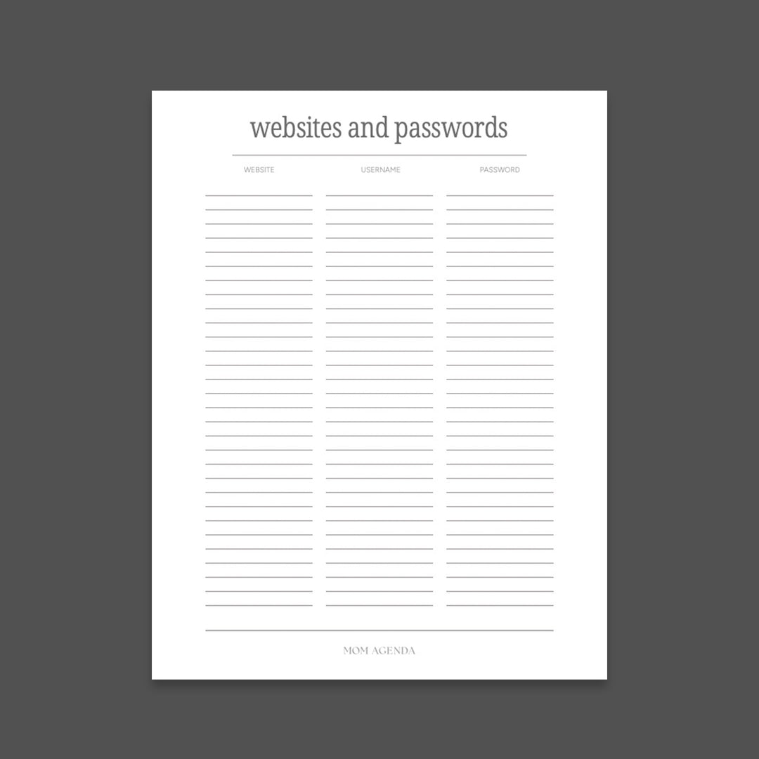 Managing multiple logins for school portals, sports teams, streaming services, bills, banking, and kids’ apps is… a lot. This printable keeps everything organized in one spot (no more guessing, resetting, or trying five versions of your favorite password).